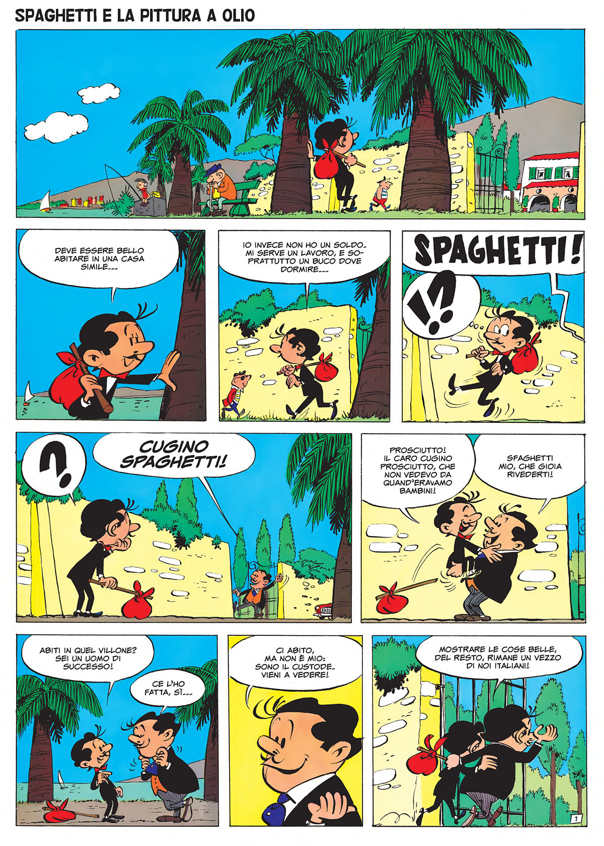 Nona Arte, invece, porta per la prima volta nel nostro Paese un classicissimo del fumetto francofono: Spaghetti, creato – con enorme autoironia – dal milanese emigrato in Belgio Dino Attanasio, con i testi di René Goscinny. Un’esilarante serie comica con protagonista un nostro connazionale immigrato in nord Europa, che eccelle nell’arte propria di noi italiani: quella di arrangiarsi.