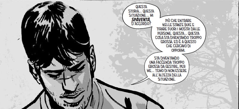 Questo albo di Outcast segna un punto di svolta nella trama: l’invasione demoniaca è ormai accertata, occorre prepararsi alla guerra. Robert Kirkman ha la caratteristica, che qui esprime con particolare compiutezza, di saper mantenere un tono scorrevole anche quando tratta argomenti oscuri come quelli di questa serie.