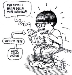 Nelle avventure surreali di Zeno Porno (uno sceneggiatore di fumetti Disney ex agente della CIA… c’è bisogno di dire altro?) nel 1998, come in quelle tremendamente reali di The SuperMaso Attitude (ispirata alla vicenda del parricida Pietro Maso, che due anni prima gli diede popolarità anche nei mass media “generalisti”), la precarietà e la complessità del vivere contemporaneo raggiungono con prepotenza il lettore, abbacinato dalle atmosfere noir dell’investigatore di infedeltà coniugali Barokko (1988) come da quelle oniriche di “Durasagra” Venezia über Alles (1994).