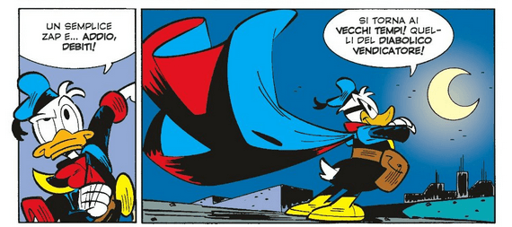 Paperinik si trova coinvolto in un interessante dilemma etico: distruggere o meno la famigerata lista dei debiti che preoccupa Paperino e che per Paperone è un formidabile strumento coercitivo di persuasione. La lista, rappresentata in tantissime storie come un infinito rotolone di carta pieno zeppo di numeri in continuo aggiornamento, diventa il protagonista di questa piacevole storia. Lo sceneggiatore, Jacopo Cirillo, utilizza gustosi flashback su Paperino e sulla sua giovinezza da studente di college e mette in piedi un bel finale. La storia riflette con positiva amarezza sul ruolo di dello sfortunato papero e ironizza su certi luoghi comuni utilizzati in maniera routinaria e quasi svogliata, anche nei fumetti.