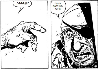 A un altrettanto ispirato Enrique Breccia il compito di trasformare in immagini le aspirazioni dello sceneggiatore. Il disegnatore riesce perfettamente nel duplice compito. Infatti da un lato realizza fantastiche atmosfere con il suo efficace chiaroscuro, ora allargando sul generale, ora mirando sul dettaglio. Saltellano e corrono improbabili o terrificanti creature aliene che rivaleggiano per efficacia con quelle tipiche del Jeff Hawke di Willie Patterson e Sidney Jordan. Dall’altro riesce a non perdere di vista la realtà, riuscendo a fornire una profonda umanità ai personaggi. Dietro ogni volto c’è la storia di una vita. Le rughe scolpiscono il viso del capitano Conrad facendoci capire la sua profonda malinconia, quella di chi ha perso un grande amore, condannandolo a una perenne tristezza. È un eroe romantico, disincantato, per certi versi molto simile ad Alvar Mayor. Le guance paffute, gli occhi porcini del lupo di mare Jonah sembrano testimoniare le non epiche gesta di un uomo burbero, istintivo, facile all’ira. Un uomo in definitiva semplice ma leale, che ha sempre cercato di vivere in grande allegria, non lesinando alla prima occasione possibile di tuffarsi nei vizi di Bacco, tabacco e Venere. Al contrario, il volto liscio del giovane mozzo O’Flagherty è ancora un foglio tutto da scrivere. Si è ritrovato con un amore impossibile alle spalle, ma riesce ancora ad andare avanti con grande ottimismo, con l’entusiasmo dei suoi anni. Un discorso a parte meritano le dettagliatissime inquadrature del Pellegrino che si stagliano su uno sfondo nero, chiazzato di stelle, o dentro un paesaggio alieno. Tavole stupende come poche, capaci di calamitare l’attenzione del lettore anche più esigente.