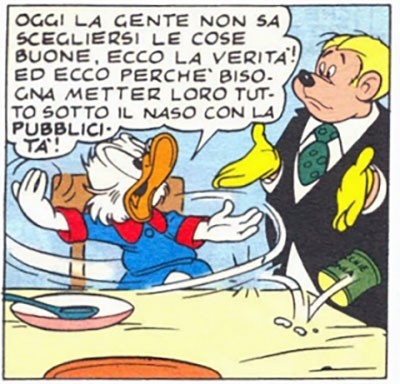 Anzi, a ben vedere, è proprio Paperone che all’inizio dell’avventura si comporta in maniera spregiudicata e al limite della legalità in ambito finanziario, in un gioco di compra vendita di azioni e titoli che Scarpa riesce a spiegare ai lettori in modo chiaro e semplice, un meccanismo che spesso è alla base di numerose e controverse operazioni di borsa anche oggi.