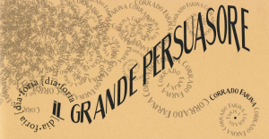 Protagonista di questo lavoro, pubblicato per la prima volta nel 2012, a quarantacinque anni cioè dalla sua realizzazione originaria, dall’associazione culturale versiliese Diaforia in un volumetto di sessanta pagine e scaricabile in PDF dal loro sito (diaforia.org/2012/10/02/dia-foria-n9-corrado-farina) è un manager, spregevole, autoritario, pieno di sé e decisamente insopportabile, la cui figura rimanda involontariamente a quella di un noto uomo politico ed imprenditore italiano odierno, che, incarnando la personalità di famosi tiranni reali e di fantasia, un mix di Mussolini, il Grande Fratello di Orwell e Armando Testa, dirige il suo gruppo di lavoro.