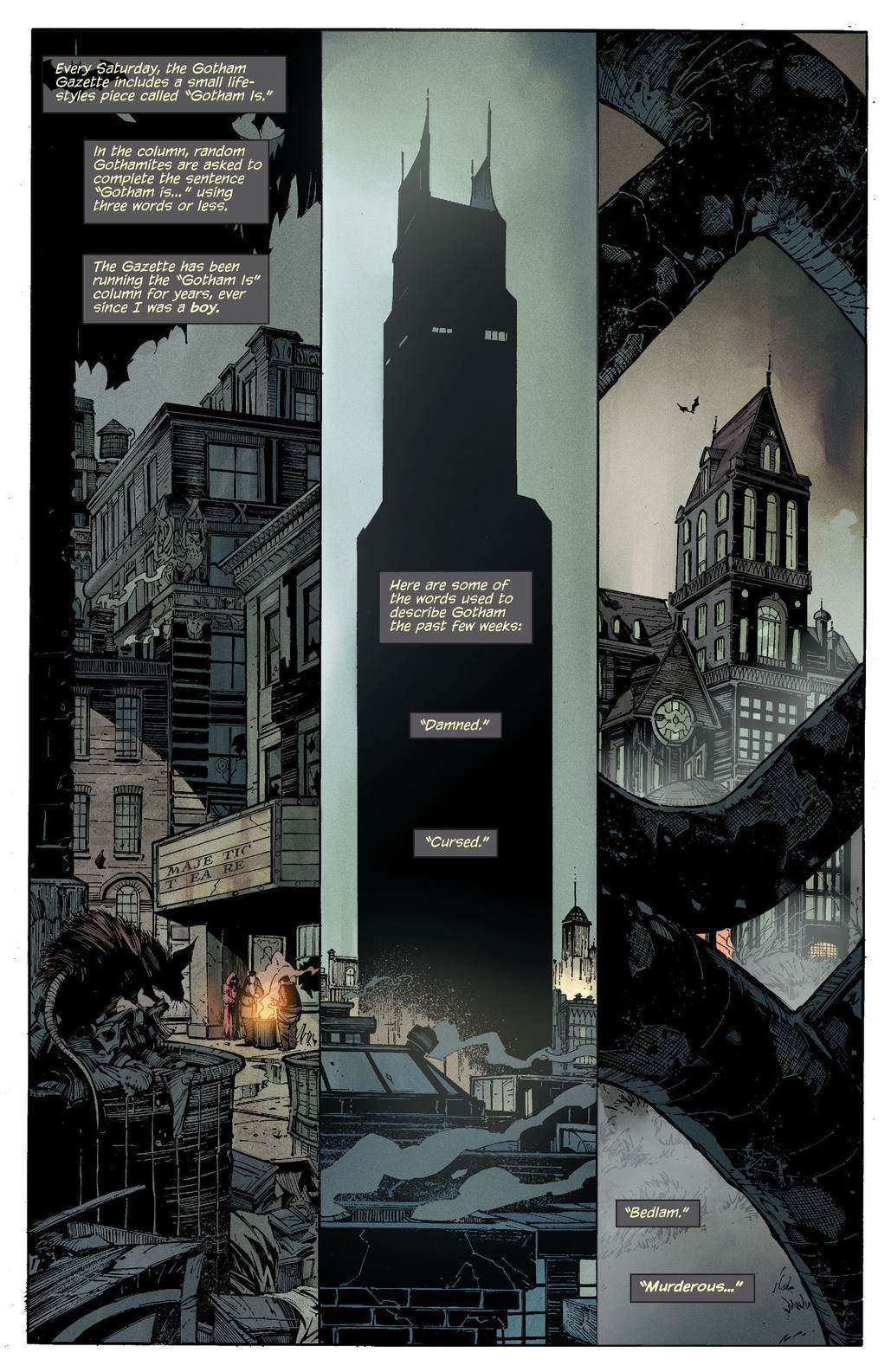 A questo punto, che speranze può avere Gotham? E soprattutto, che speranze può avere ogni metropoli reale, se diamo per assunto che Gotham sia una trasposizione fantastica della nostra realtà, ormai definitivamente, nei casi più avanzati, post metropolitana?
