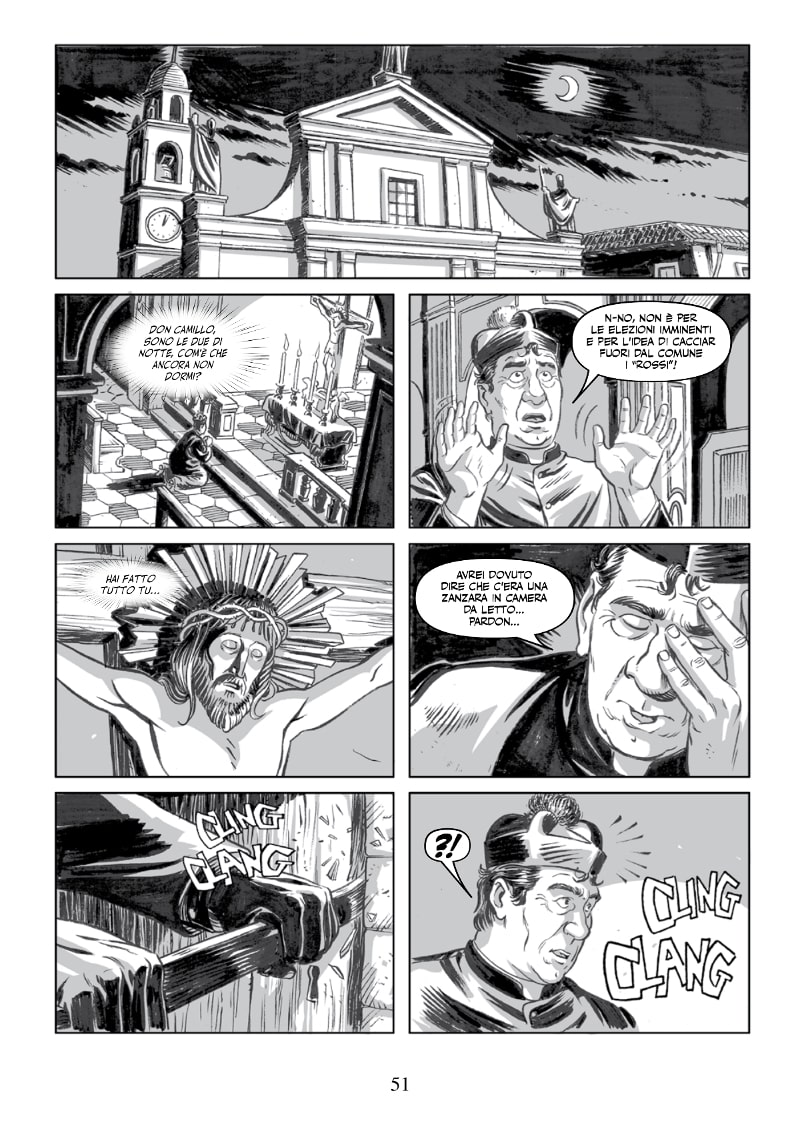 Al bookshop saranno disponibili tutti i quindici volumi della serie Don Camillo a fumetti e le ultime copie dell’albo speciale Un notturno che non fa dormire con l’incontro tra Don Camillo e Diabolik, in omaggio con ogni acquisto.