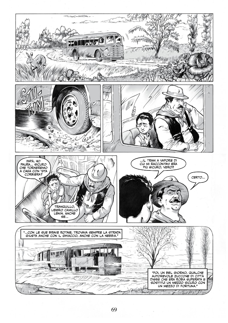 Le sceneggiature sono di Davide Barzi, a partire dai racconti originali di Guareschi. I disegni sono di Tommaso Arzeno, Francesco Bisaro, Adriano Fruch e Mirko Treccani. La copertina è di Ennio Bufi.