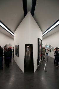 Alla Kunstalle, la mostra di Raymond Pettibon si concentrava sugli ultimi anni della sua produzione, dal 2006 al 2011. Noto ai più per la copertina di Goo dei Sonic Youth, Pettibon approccia oggi le sue opere in modo completamente diverso: da quadri in bianco e nero con disegni al tratto che ricordavano grandi vignette, si è passati ora a una pennellata molto più espressionistica, con uso massiccio del colore e una giustapposizione molto più caotica di immagini e testo. Personalmente preferivo la sua fase precedente (ricordo una bellissima mostra alla Galleria d’Arte Moderna di Bologna nel 2003), ma i suoi quadri continuano ad avere una grande potenza visiva.