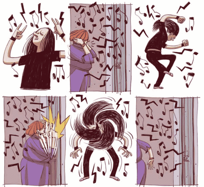 Ridiamo di gusto per l’adorabile petulanza del cane del signor Dimitri, per i battibecchi tra coniugi, e per il forsennato agitare di capelli del nipote metallaro di Dirce. Ma siamo stati tratti in inganno: in quest’atmosfera da sitcom, fa capolino il fantasma di una dittatura militare, non meglio definita nel tempo e nello spazio, ma che potrebbe essere qui e ora. Questo contesto socio politico appena accennato condiziona la vita dei personaggi e getta luce sulla loro personalità.