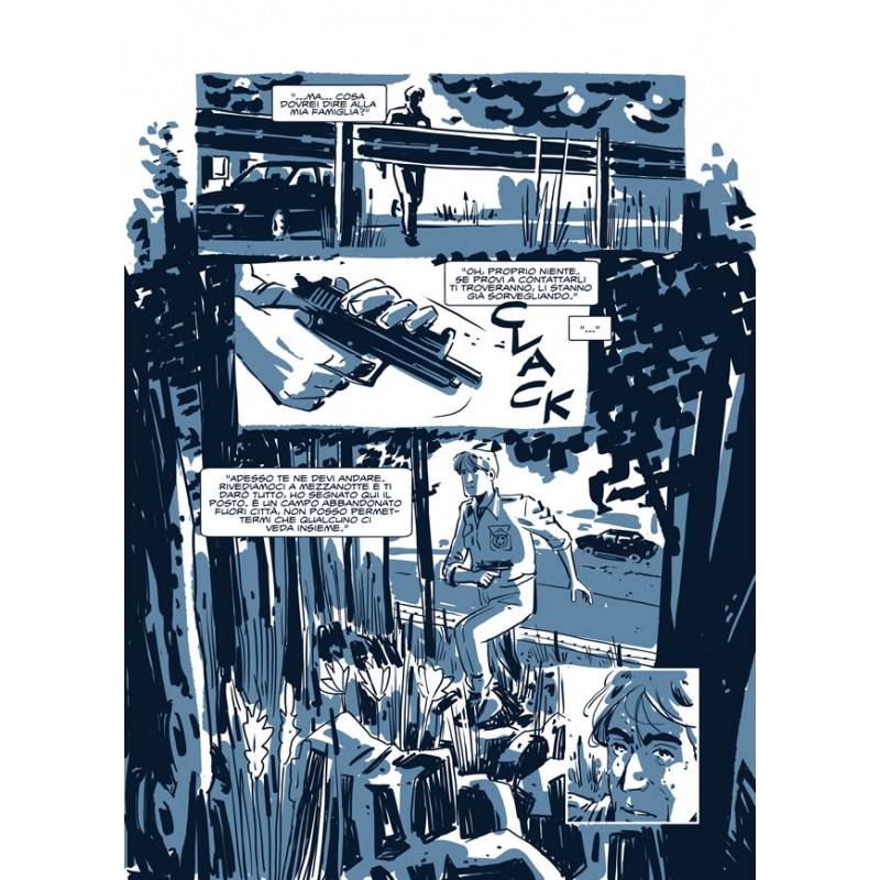 Si tratta di una storia dai toni intimisti, in cui una coppia di giovani innamorati incrocia il destino di un poliziotto (o meglio, i suoi resti) vissuto nel passato. L’intreccio orchestrato da Federico Chemello si basa sull’alternanza tra le vicende del presente e i flashback e su una trama ridotta all’osso: lo sceneggiatore ha infatti preferito concentrarsi sui personaggi, i cui tratti emergono in maniera convincente attraverso le lunghe scene di dialogo. Purtroppo l’introspezione non riesce ad affrancare del tutto i personaggi da caratteri che risultano stereotipati, ma nonostante i difetti la storia risulta comunque appagante per il lettore, concentrata com’è sulle emozioni e sull’atmosfera.