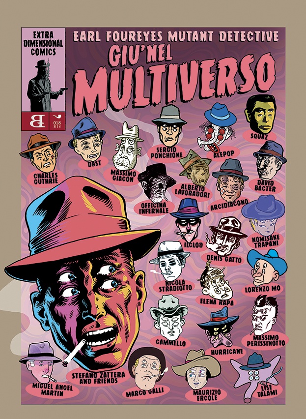 Sempre restando nel postmoderno, i tuoi fumetti sono letteralmente una galassia in espansione: un insieme complesso di citazioni, riferimenti, collegamenti tra storie e filoni narrativi, così come anche di collaborazioni con autori e autrici. Earl Foureyes è già stato protagonista di una serie di tributi, ma da poco hai lanciato un nuovo crowfunding con Barta Edizioni, dal titolo Earl Foureyes – Giù nel Multiverso. Ti va di parlarci di questo progetto?