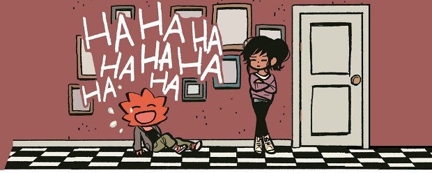 Tendenzialmente no, e infatti Bryan Lee O’Malley ci mostra la reazione che ci aspetteremmo da Katie: il risultato è una struttura narrativa che richiama i livelli di un videogame, altra similitudine con la modalità di racconto utilizzata nell’opera precedente del fumettista.