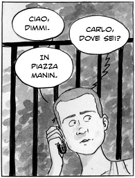 La prima parte del volume è costruita con ritmo serrato e vibrante: le basi farsesche del G8 vengono sintetizzate ricordando le assurdità pretese dal Presidente del Consiglio Silvio Berlusconi per la gestione interna della cosiddetta Zona Rossa: finti limoni piazzati all’interno delle aiuole e divieto per gli abitanti di stendere il bucato – in particolar modo le mutande – sui balconi e alle finestre onde non compromettere la fotogenia mediatica del quartiere. Quindi le manifestazioni pacifiche di protesta, organizzate dal movimento no-global del Genoa Social Forum, attaccate da ogni lato dalle forze dell’ordine, mentre i temuti Black Bloc agiscono indisturbati in altri settori cittadini. I lacrimogeni, le barricate, Carlo – indignato da ciò che sta accadendo alla sua città – che si unisce alla folla inferocita opponendo resistenza a carabinieri e poliziotti, in assetto antisommossa, che manganellano la gente anche con l’ausilio di armi improprie. E, a inframmezzare, questo flusso narrativo, le poesie lasciate sul tavolo della cucina alla sua compagna, le cartoline delle vacanze, il suo desiderio di correre per aiutare i famigliari in difficoltà (quei famigliari dai quali si era distaccato per seguire l’indipendenza e coi quali viveva un rapporto dialettico talvolta anche conflittuale).
