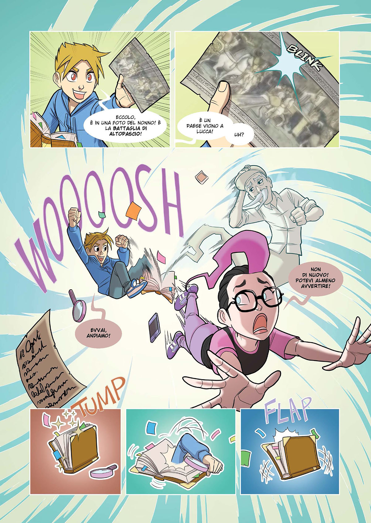 La narrazione combina avventura, indagine e divulgazione storica, unendo il lavoro sulle fonti all’immediatezza del fumetto per ragazzi.
