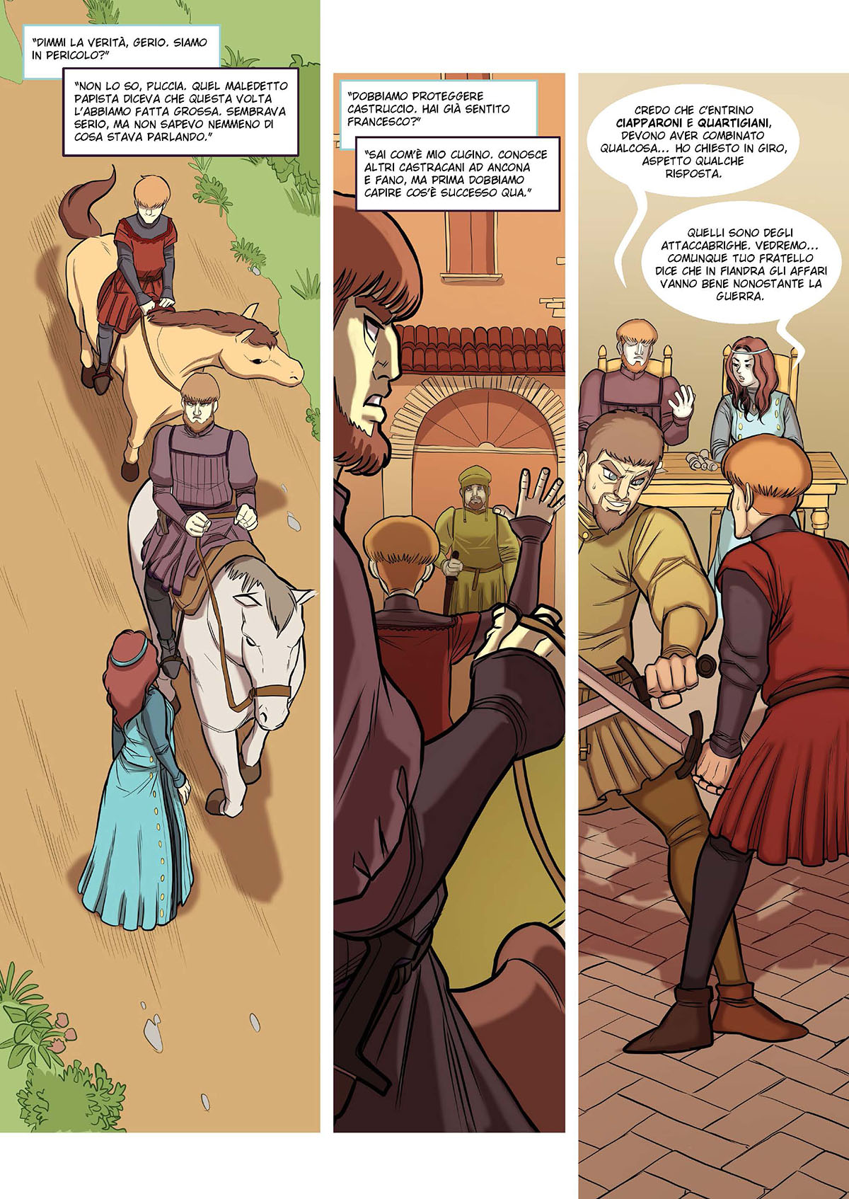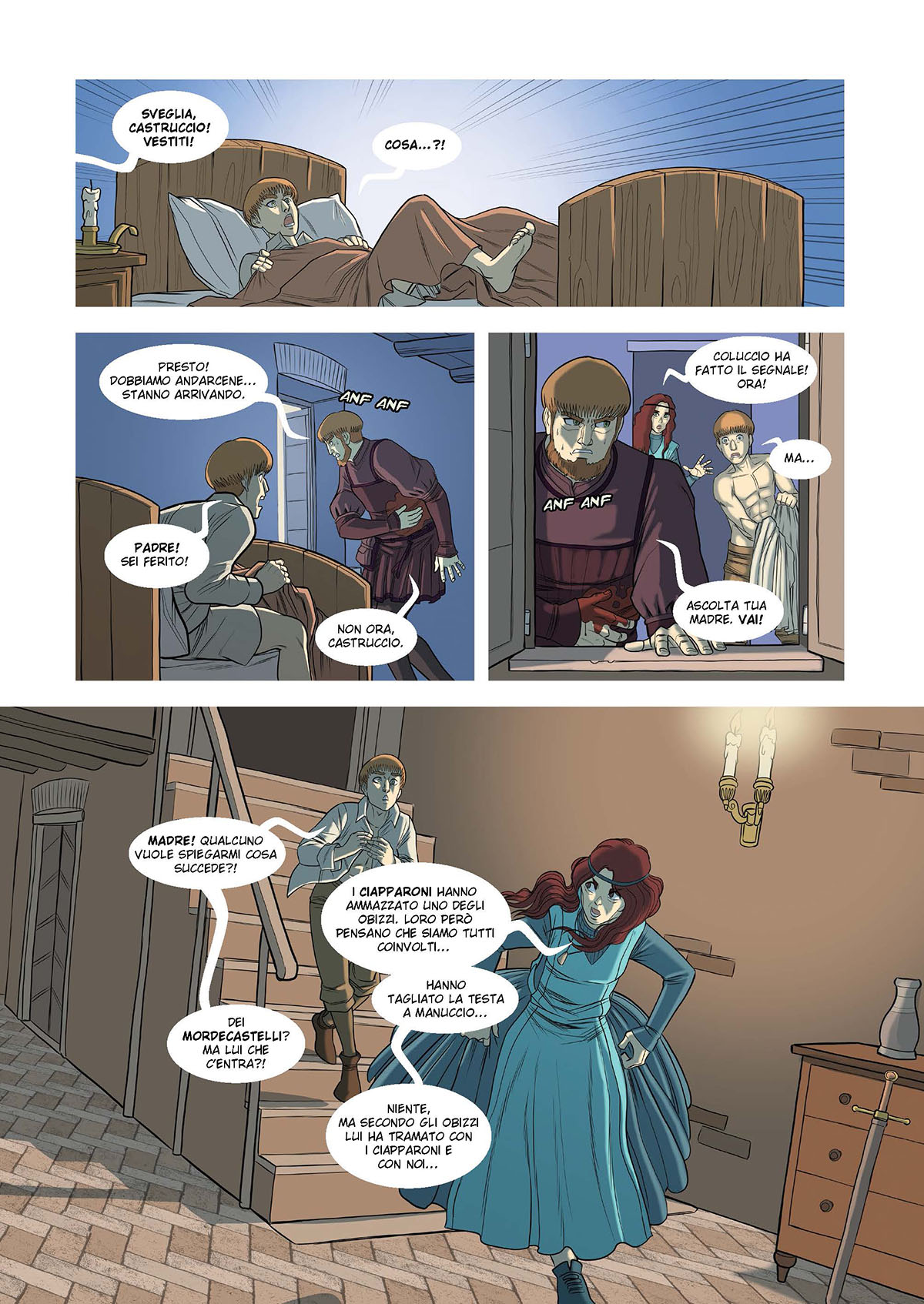 Dopo l’esordio in Nico & Cice. Diari di viaggio: Lucca, nel nuovo titolo, Nico e Cice – guidati dai diari di viaggio del Nonno – seguono le tracce di Castruccio Castracani attraversando città e castelli d’Italia e delle Fiandre, mentre decifrano indizi che collegano la vita del personaggio al messaggio segreto ricevuto in eredità con una lettera.