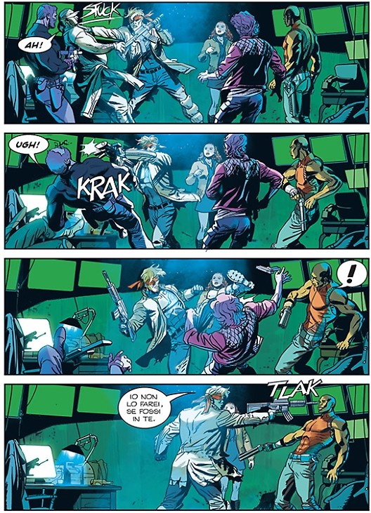 Globalmente però l’episodio risulta davvero convincente e la serie è in continuo e costante miglioramento, poiché sembra avere trovato il giusto equilibrio tra fasi action e introspezione psicologica. Il finale inoltre preannuncia un nuovo e completo cambio di background, sviluppi narrativi e protagonisti, una soluzione praticamente mai vista nell’ambito della produzione bonelliana classica prima di Orfani, e che finalmente giustifica quell’etichetta di serie rivoluzionaria sbandierata all’inizio.
