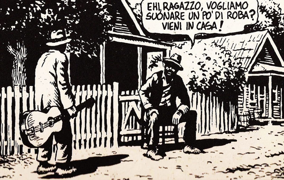 Robert Crumb racconta il Blues è un libro meraviglioso perché è adornato dalle sublimi tavole di Robert Crumb, che in questo collage di storie ci immerge nella sua musica prediletta, ce la fa conoscere attraverso le storie di sconosciuti blues man durante la grande depressione, come nella meravigliosa storia iniziale dedicata a Charley Patton in cui Crumb ci fa respirare la vera America, quella stessa descritta da Steinbeck in Furore, costruita col sudore della povera gente di colore, schiavizzata nei campi di cotone e per cui quella musica rappresentava un sogno d’evasione.