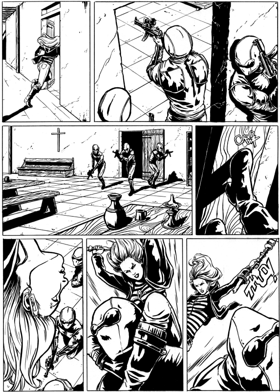 Hai disegnato il numero 2 della serie. Da alcune tavole che si è avuto la possibilità di ammirare in rete, si può notare che il tuo stile ha virato verso una linea più chiara, ma contemporaneamente più decisa, più ricca di distacchi netti tra neri e bianchi rispetto ai tuoi precedenti lavori. Scelta tua, o mutuata insieme ai curatori di The Secret?