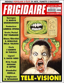 FRIGIDAIRE n.243 e IL Nuovo MALE n.9, con un altro dei giornali falsi/veri, Il Mondo Libero, fondato da Vittorio Infeltrito e diretto da Maurizio Beldietro. Questo numero di Frigidaire (tabloid a colori in vendita a 3 euro, con la copertina di Davide Raimondi) si apre con una riflessione del direttore dal titolo “Il nuovo underground”, sull’epoca della globalizzazione e del web. Tra i tanti argomenti da segnalare: il reportage “America spiona” del corrispondente dagli Usa Paolo Pontoniere sull’abnorme sviluppo delle organizzazioni private impegnate nello spionaggio interno; un servizio dalla Turchia di Filippo Cicciù sulla battaglia civile per difendere, dalle spinte integraliste islamiche, la legalità dell’aborto; un viaggio giornalistico in Val di Susa di Sacha Biazzo e Simone Chierchini per conoscre da vicino chi si oppone al TAV.