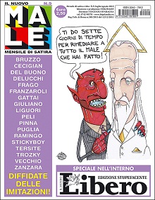 Il Nuovo Male, mensile di satira, politica e idee (tabloid a colori in vendita a 2,50 euro, con la copertina di Giuseppe Del Buono) contiene in prima pagina l’editoriale di Tersite, storico protagonista de Il Male sin dal lontano 1978, sulla “Resurrezione” in vita, accompagnato da una grande e irriverente vignetta di Giuliano. Nell’interno una raffica di fumetti, vignette, invenzioni e scritture paradossali. Da segnalare in particolare il fumetto “Grigliata sociale”, una cruda e divertente storia politica su Monti e la Fornero, di Marco Pinna e Carlo Gubitosa, “Accionavich” una nuova puntata di Acciona il personaggio bizzarro e indistruttibile inventato e disegnato da Joe Trozky e Stickyboy, una storiella fantareale sulle facce di culo al potere di Antonio Vecchio, e le numerosissime vignette di Delucchi, Giuliano, Del Buono, Franzaroli, Cecigian, Frago, Pinna, e di Oscar Sacchi che disegna e ci invia una immagine scanzonata sulla condizione dei terremotati dalla sua tenda in Emilia. Testi e innovazioni linguistiche di Marino Ramingo Giusti, Gianluca Liguori, Pierfrancesco Cantarella, Pietro Peli, Gino Costiera. Non manca la rubrica della “Rassegna stampa dei mali più diffusi” di Cleono Zanzara, il racconto di Guido Giacomo Gattai della serie “Joe Cosporco” il super-fallibile investigatore privato e perfino una lettera di protesta firmata da Dio in persona.
