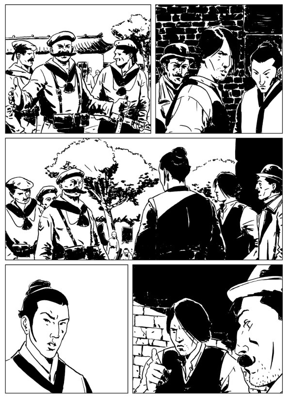 Tutto fa documentazione e, per una narrazione a fumetti, la documentazione visiva (archivi fotografici, film, repertori illustrativi) è fondamentale. Sulla Cina dell’epoca, per mia fortuna, la documentazione (in particolare fotografica) abbondava e dunque ho potuto farne largo uso. Anche perché io, come sceneggiatore, sceneggio meglio se mi baso su delle location esistenti. Sceneggiare significa mettere in scena. Se non si ha precisamente in mente la scena, si sceneggia in modo troppo vago e generico.
