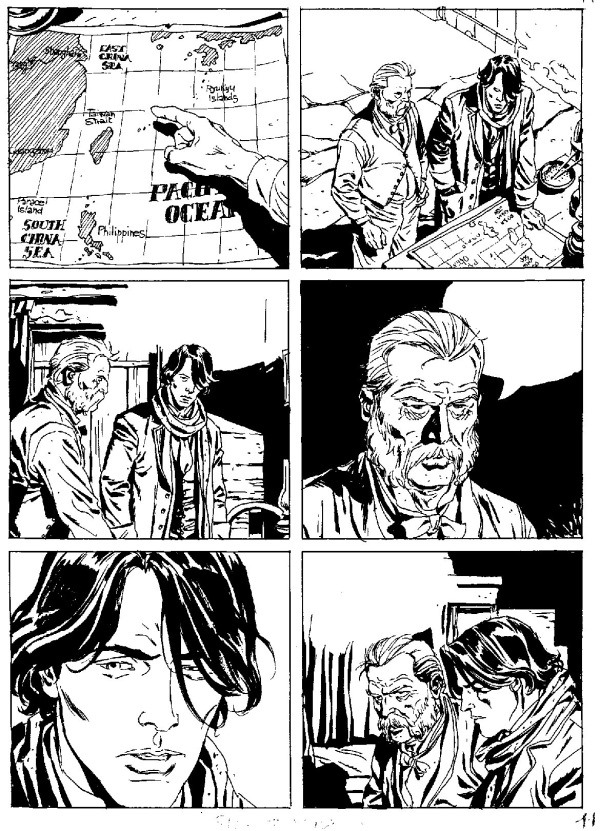Le due cose non si escludono, anzi io credo che la documentazione fornisca spunti narrativi ricchissimi, a saperli cogliere. Un esempio tratto da un numero che sarà presto in edicola: Ugo partecipa a una trattativa commerciale con dei funzionari delle ferrovie cinesi. Beh, questa trattativa l’ho tratta da un epistolario italiano d’epoca. Era una trattativa realmente avvenuta e nel modo che io racconto. L’apporto creativo è stato che facendola condurre da personaggi di fantasia e nel contesto di una situazione romanzesca più ampia, l’aspetto puramente aneddotico e “coloristico” veniva inglobato nel racconto di fantasia e non restava fine a se stesso.