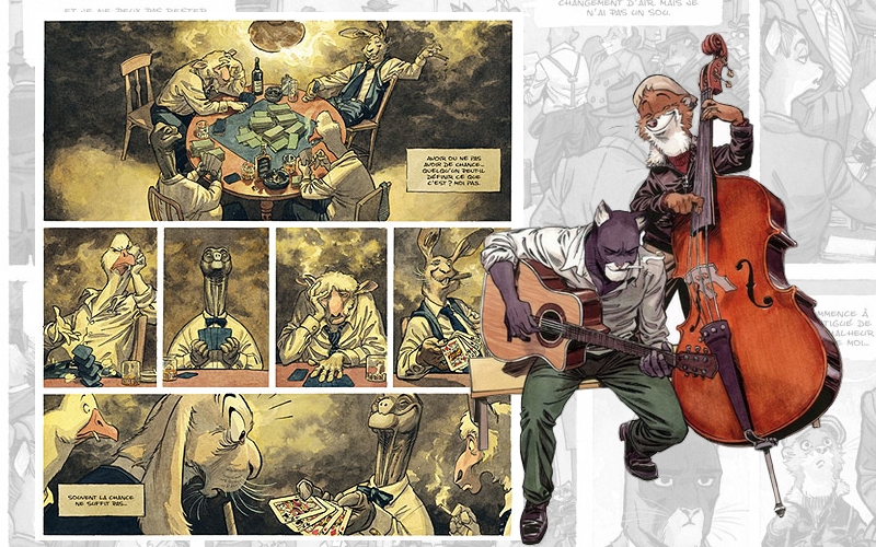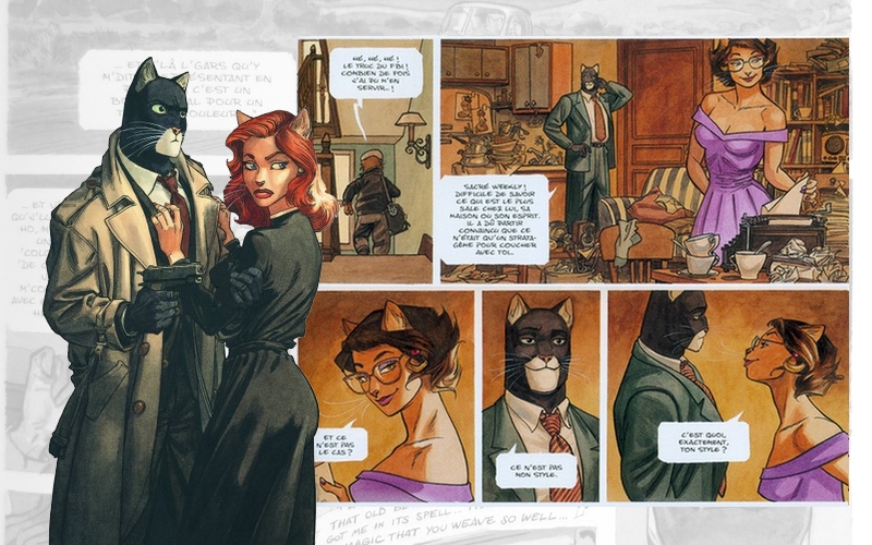 In questo elemento “disturbante” emerge l’aspetto davvero peculiare della serie: una chiosa dotta, e al tempo stesso cinicamente divertita, a millenni d’antroporfismo, dalle favole letterarie già citate agli illustratori dell’ottocento come Doré e Grandville, fino al Maus di Spiegelman. Blacksad non sarebbe credibile per il pubblico come personaggio finzionale (e di conseguenza come prodotto editoriale), se non vantasse nel suo DNA – per rimanere al genere felino – i vari Felix, Krazy Cat, Fritz… I precedenti fumettistici alimentano l’immaginario e ne sostengono la poetica espressiva.