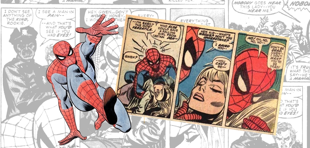 Quando, al termine della caduta, la ragazza rimane appesa nel vuoto alla tela di Spiderman, una piccola ma significativa onomatopea (SNAP!) annunciò ai lettori che qualcosa si era spezzato per sempre nel corpo di Gwen e, di conseguenza, nella vita editoriale dell’Uomo Ragno.