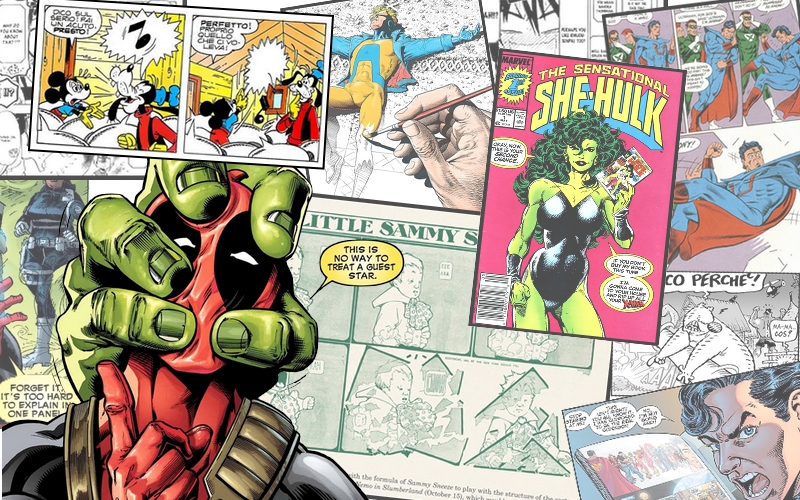 Non bisogna certo scomodare Bertold Brecht o Woody Allen, per individuare anche nel fumetto – così come nel teatro o nel cinema – una lunga pratica di “storie/non storie” che abbattono la cosiddetta “quarta parete”, con personaggi che si rivolgono allo spettatore, riflettono sulla loro condizione narrativa, etc.