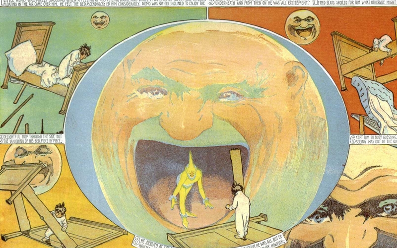 Forse qualche storico del fumetto potrebbe smentirmi, carte alla mano, ma mi piace pensare che questo legame speciale tra “Moon & Balloon” sia iniziato, ad inizio Novecento con il Little Nemo di Winsor McCay che arriva sulla Luna in una delle sue stupefacenti avventure oniriche.