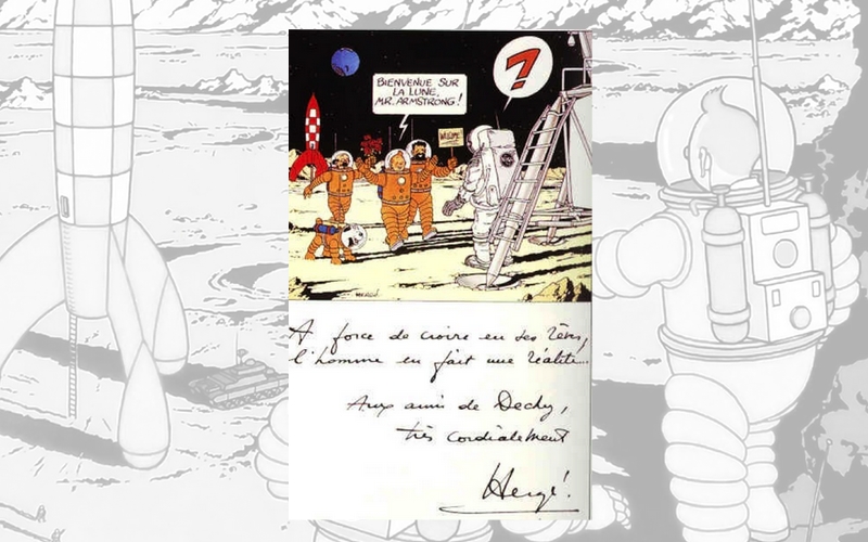 Il sogno è l’autentico carburante del suo viaggio tra le stelle ed esprime il legame profondo che unisce immaginazione e innovazione. Come ribadisce lo stesso Hergé nella dedica con cui il cartoonist accompagna la vignetta-omaggio a Neil Armstrong: