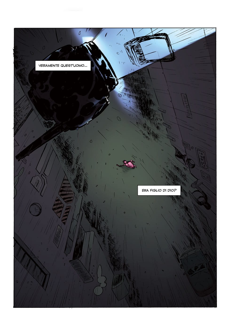 Dopo The Mighty and Deadly Iron Gang di Officina Infernale, Tumorama di Pablo Cammello, Restiamo sdraiati qui per sempre di Federico Chemello e Alberto Massaggia, The Pretender di Bartolomeo Argentino, Antonello Cosentino e Francesco Montalbano, Lo Spazio Bianco è lieto di ospitare le opere de La Stanza, un collettivo composto da giovani e promettenti autori. Figlio di Dio è un racconto breve scritto e sceneggiato da Salvatore Vivenzio, disegnato da Stefano Mastrantuono e colorato da Gianluca Francesconi.