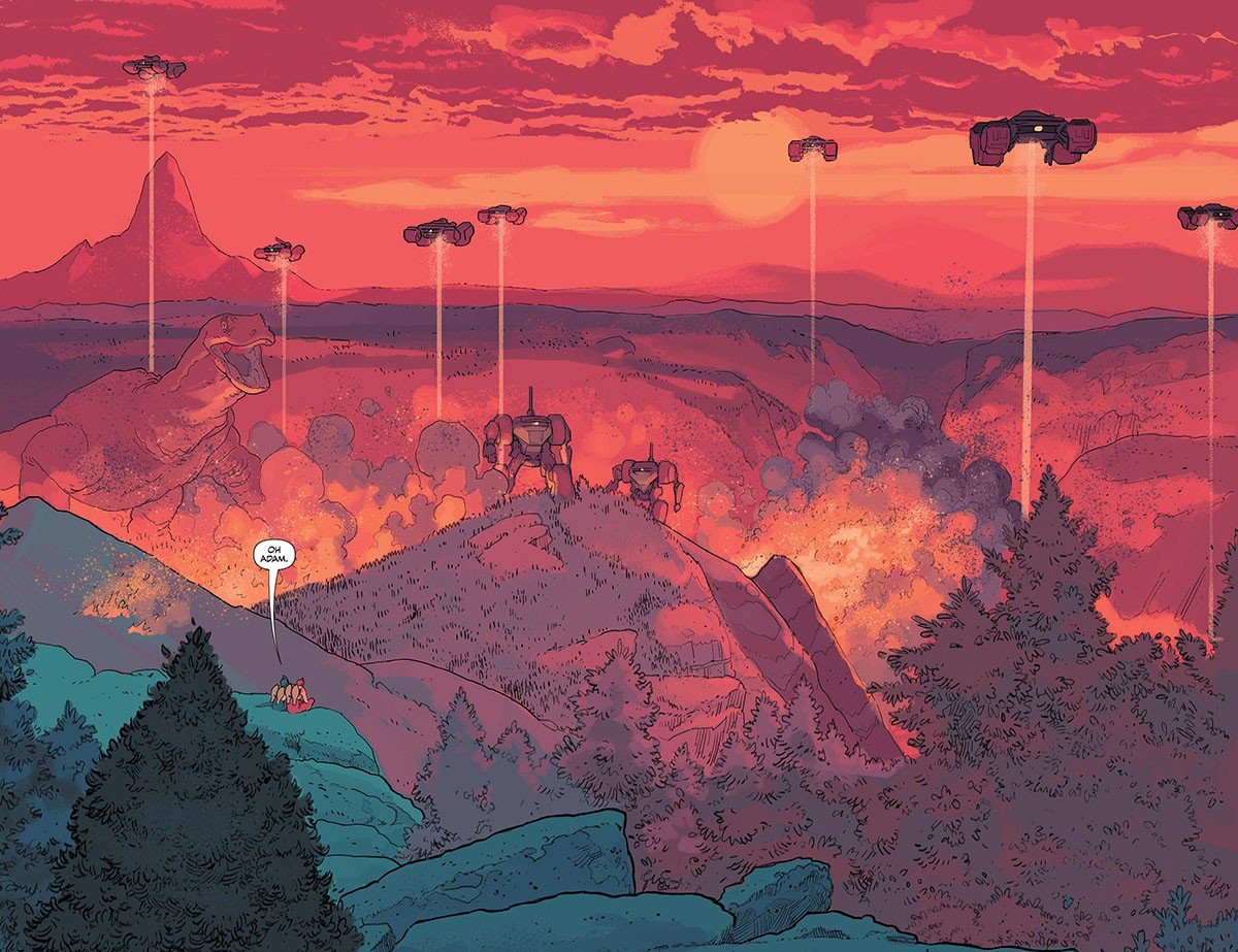 Alle scene belliche si alternano momenti intimi, nei quali emerge l’amore profondo che lega i due protagonisti, il ruolo centrale – apparentemente dominante – di Alanna e il loro progressivo allontanamento. La presenza della figlia, riferimento costante nella linea narrativa del presente, resta in realtà marginale e la sua stessa scomparsa è presente nei dialoghi fra Adam e Alanna, ma non rappresentata: poiché quella scomparsa è di fatto il motore narrativo, possiamo dire che al centro di Strange Adventures c’è un colossale buco nero, che percepiamo attraverso i suoi effetti sulle scelte e le motivazioni dei personaggi.