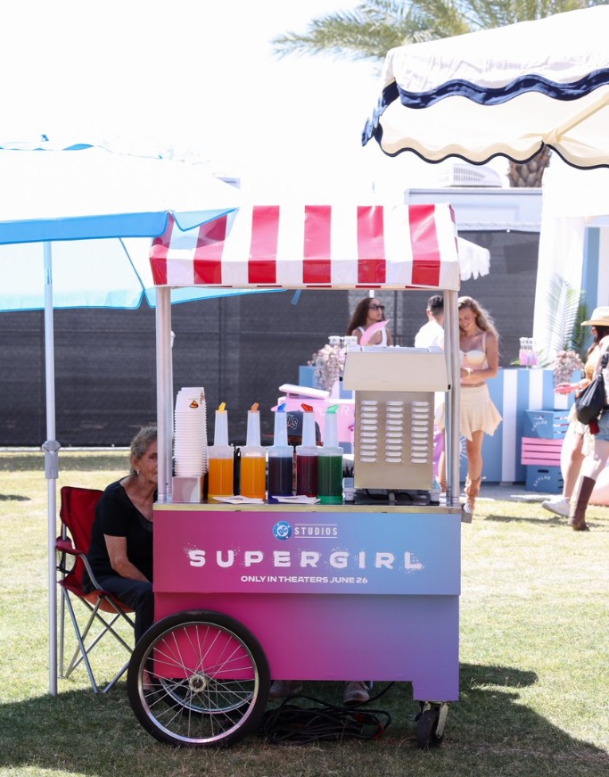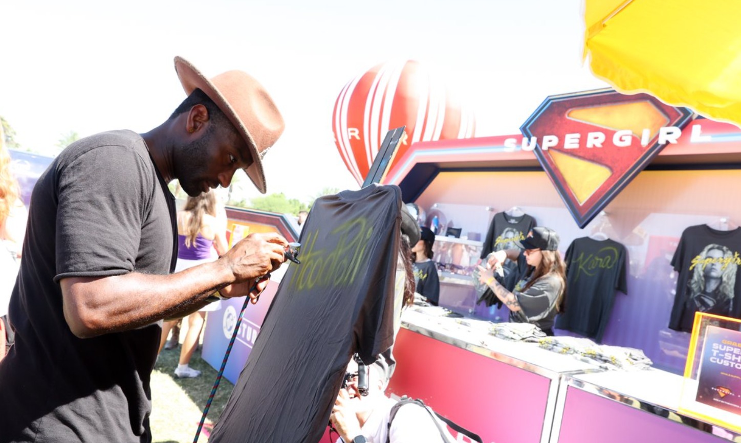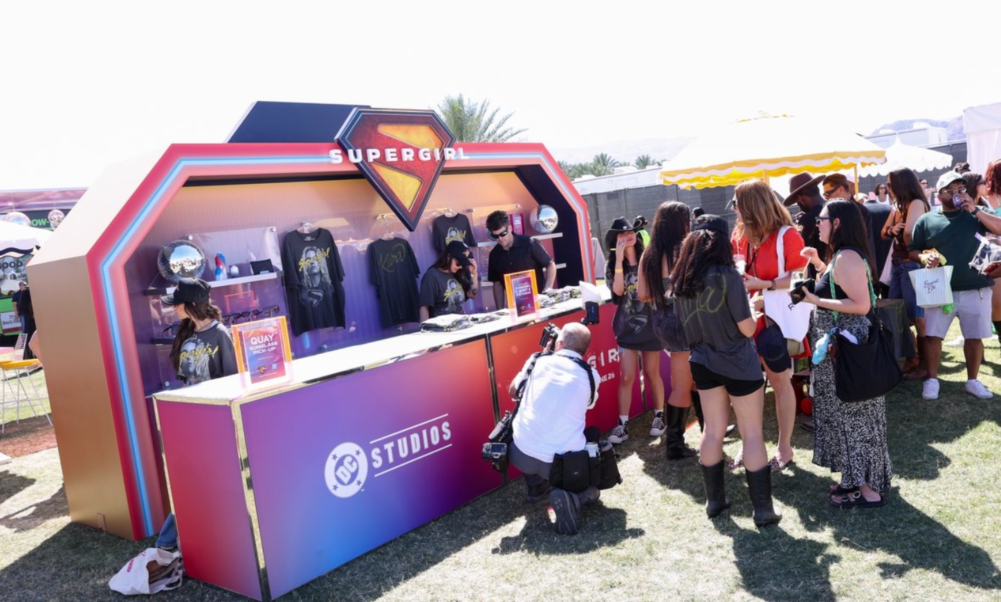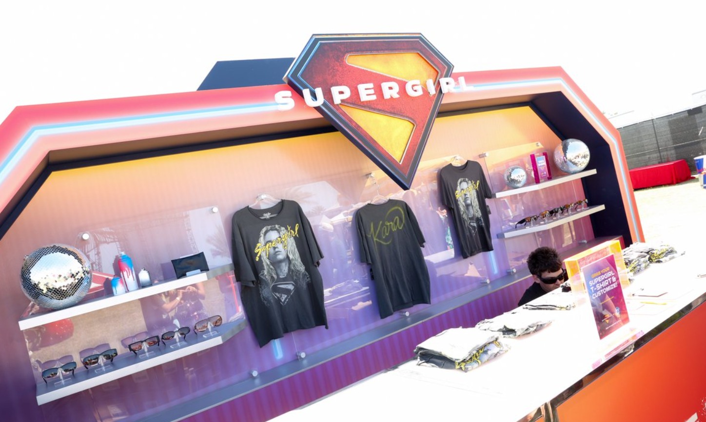 Lo stand dedicato al merchandising ha fatto sì che i fan potessero acquistare e personalizzare t-shirt di Supergirl, con un artista dal vivo pronto a dipingere disegni personalizzati sul momento. Sfere da discoteca, occhiali da sole e un’estetica da festival hanno reso l’allestimento perfettamente in sintonia con il pubblico attento alla moda del Coachella.