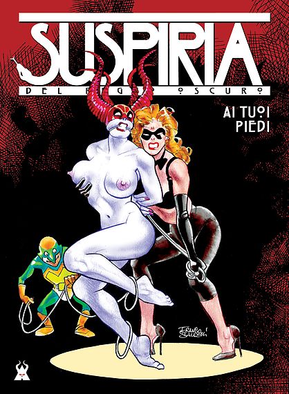 Il primo albo, in bianco e nero di 40 pagine, segna l’eccellente ritorno all’erotismo del Maestro del bondage & fetish Franco Saudelli e de La Bionda, il suo personaggio più celebre. Una crossover dal titolo “Ai tuoi piedi” (e poteva essere altrimenti…?), che vede la sensuale ladra in mascherina finire nel Regno delle Dee Oscure insieme a Mistermastermind (supereroe con poteri mentali creato da Saudelli e Lillo per la rivista americana Leg Show) per rubare una tetra reliquia.