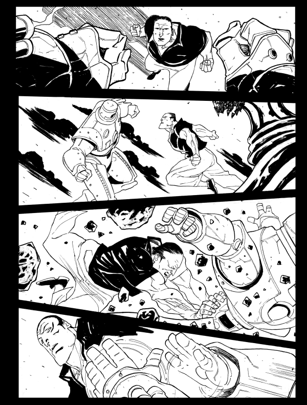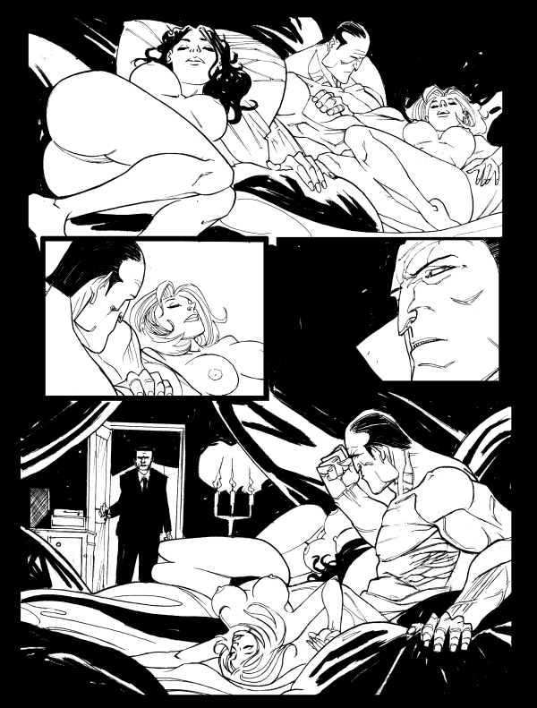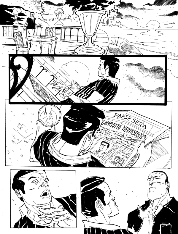 Con differente budget e, ovviamente, bacino di utenza, avrei molto gradito vedere la stessa storia raccontata in una miniserie a colori “all’americana”, approfittando di un Bonaccorso lineare e massiccio come un novello Adam Pollina, qui costretto a usare i neri, gettati a profusione, per dare profondità e movimento alla tavola (anche se un paio di strizzate d’occhio al Miller di Sin City si sarebbero perse con il colore). Graficamente la storia è abbastanza variegata; lo storyboard parte da una base di sei vignette per tre strisce per tavola, ma le variazioni sul tema sono frequenti. Si va dalla splash page “narrativa” per riassumere molti eventi alla tavola “sfondo” con all’interno le altre vignette. Dalle quattro vignette larghe a tutta pagina in colonna alle vignette mute con didascalia a fianco. Insomma, la narrazione è molto movimentata e i disegni non soffrono degli spazi angusti, anzi convincono per la loro anatomia.
