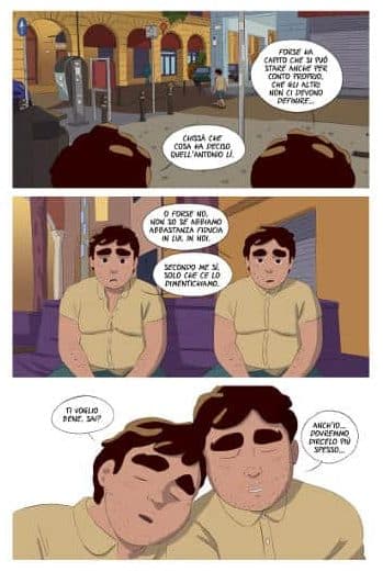 Ed è soprattutto lo sguardo che Giopota usa per raccontare la crescita di Antonio, la presa di coscienza e coraggio che lo portano ad affrontare Tancredi e a guardare con fiducia al futuro nell’ultima vignetta della storia.