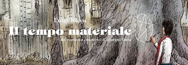 Luigi Ricca traspone in una raggelante graphic novel “Il tempo materiale”, l'opera culto dello scrittore Giorgio Vasta. Una favola oscura che nasconde una profonda riflessione sull'Italia; un “paese” alla deriva e senza prospettive.