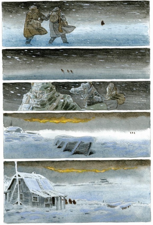 Stefano Turconi regala una regia sapiente e una cura per la recitazione di personaggi che sente vicini, ma anche con paesaggi capaci di riempire occhi e anime: l’illustratore privilegia l’acquerello, imponendo una veste cromatica che si sposa alla perfezione con la necessità di dare forma e colore ai paesaggi dell’inverno russo.