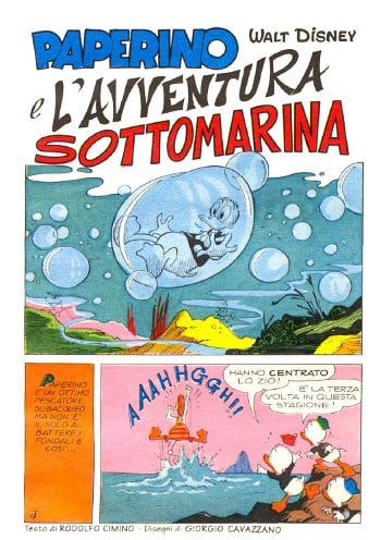 La seconda è un congegno comico a orologeria: Pezzin prende lo strampalato cugino di Paperino, lo inserisce in un contesto particolare come un sottomarino militare e gli fa creare i danni più fantasiosi e divertenti possibili. Siamo negli anni Settanta e il tratto di Cavazzano è nel pieno della sua cosiddetta “fase techno”, dove il segno si fa estremamente dinamico, con tratti netti, personaggi slanciati, espressioni facciali estreme e vignette di grande impatto, soprattutto quando viene ritratto il sommergibile al centro della vicenda, del quale si possono osservare bulloni e giunture realizzati con grande perizia.