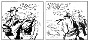 In un mondo così violento ci si muove in maniera violenta. E’ il mondo della frontiera descritto da Cormac McCarthy, è un meridiano di sangue 3 in cui bisogna farsi rispettare e soprattutto, per un eroe positivo come Tex, bisogna difendere i più deboli. In un mondo così primitivo non è mai troppo semplice essere giusti, bisogna o si è costretti a sorvolare su alcune procedure strettamente legali, vedi i classici interrogatori a suon di pugni.