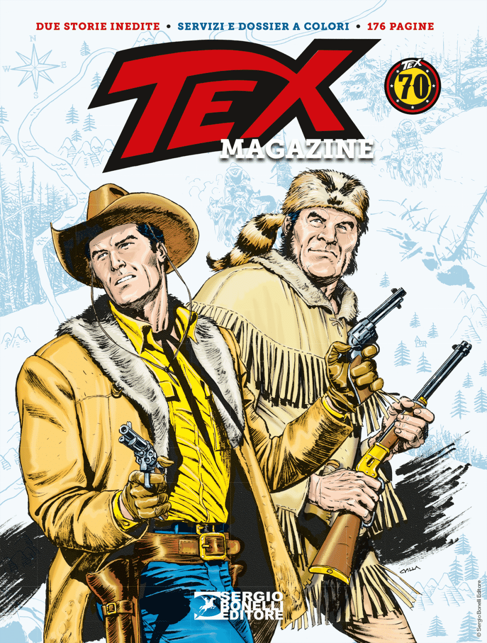 Dopo il doppio appuntamento del 2018, dovuto alla ricorrenza del settantennale, il Tex Magazine torna alla consueta periodicità annuale e anche in questa occasione propone, a fianco dei redazionali, due storie inedite.
