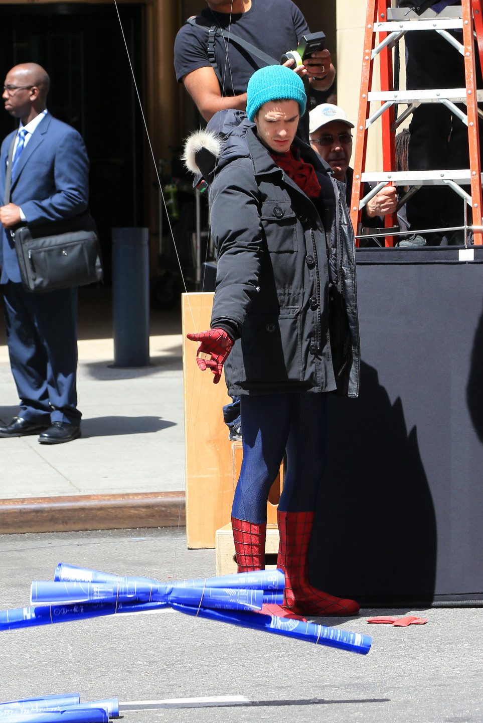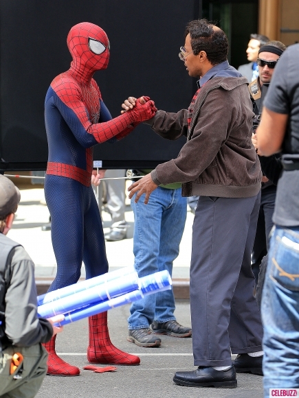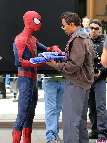 Sono state diffuse, dal sito Celebuzz, alcune immagini scattate sul set di The Amazing Spider-Man 2 a New York che ritraggono gli attori Andrew Garfield e Jamie Foxx nei ruoli dell’arrampicamuri e di Max Dillon, durante la lavorazione di una sequenza che pare riguardare il primo incontro tra i due. Potete vedere le immagini di seguito.