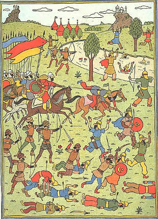 Dal punto di vista iconografico certo l’abbigliamento degli abitanti ne arricchisce la caratterizzazione etnografica, ma particolarmente suggestivo è l’effetto di profondità storica creato dal dépliant illustrato che Tintin consulta in aereo e nel quale spicca la preziosa immagine che riproduce la scena della “Battaglia di Zileheroum – riproduzione di una miniatura del XV secolo“. L’edizione a colori, realizzata nel 1947, si arricchisce del contributo di Edgar Jacobs, che, nel gruppo che affiancava Hergé nel dopoguerra su Tintin, si occupava degli sfondi. In particolare è difficile sminuire l’effetto delle decorazioni parietali della sala del tesoro reale che ospita la teca con il famoso scettro di Ottokar, che danno al luogo un tocco di fascinosa ed augusta antichità bizantina.