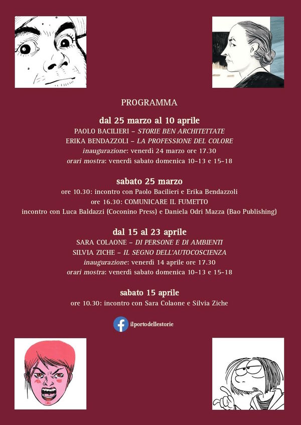 La manifestazione, giunta alla quarta edizione, si articolerà come di consueto in vari momenti in successione nell’arco di un mese. Quattro mostre saranno dedicate ad altrettante figure magistrali del fumetto italiano contemporaneo: Paolo Bacilieri, Erika Bendazzoli, Sara Colaone e Silvia Ziche.