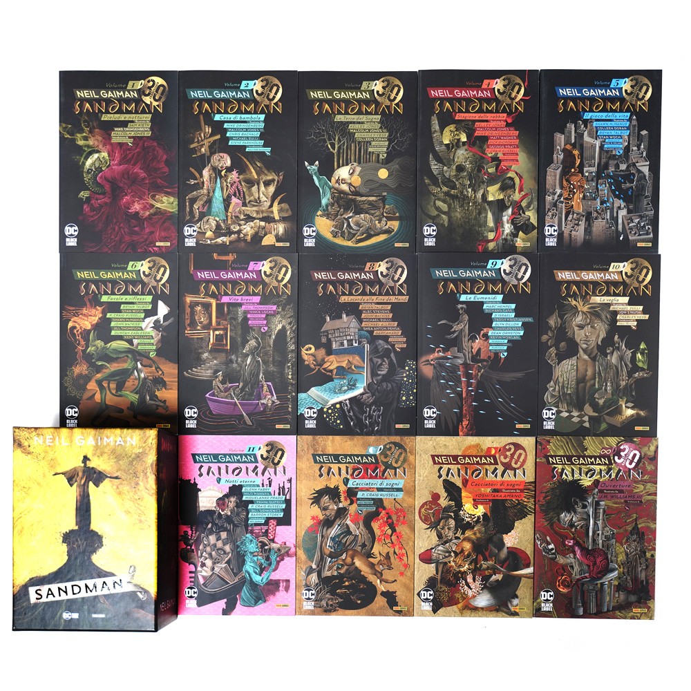 La serie prende il via con Preludi e notturni, il volume che dà inizio a una storia epica che non ha eguali nella letteratura disegnata e che introduce i lettori al mondo tenebroso e meraviglioso dei sogni e degli incubi: la dimora di Morfeo, il sovrano dei sogni, e della sua famiglia, gli Eterni. Da qui si va avanti con i restanti 9 volumi che compongono la serie originale di Sandman, racchiusi in uno splendido cofanetto da collezione reso ancora più esclusivo dalla presenza del visionario prequel Ouverture, le due versioni della storia Cacciatori di sogni e la raccolta di storie brevi Notti eterne. I volumi di Sandman saranno anche acquistabili singolarmente, con due capitoli in uscita ogni mese.