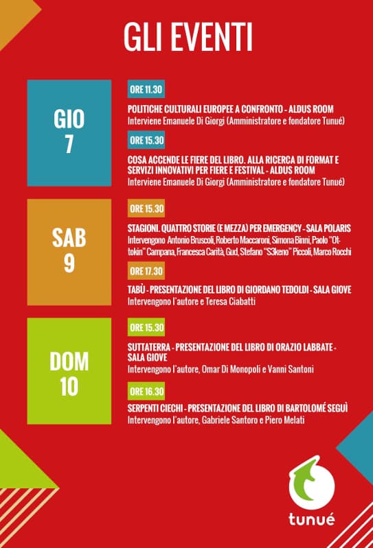 Dal 6 al 10 dicembre Tunué sarà presente alla Fiera nazionale della piccola e media editoria a La Nuvola. Più Libri Più Liberi cambia e si sposta al Nuovo Centro Congressi all’ombra della Nuvola di Fuksas.