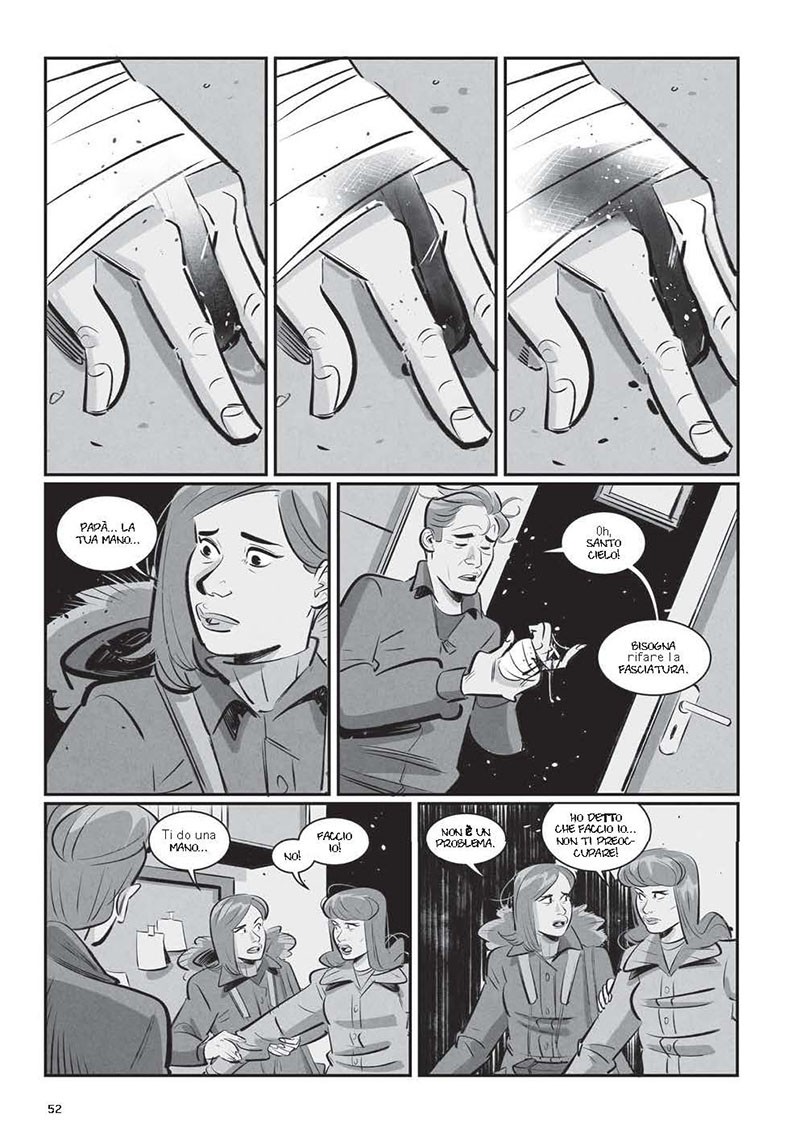 Mangiami è un libro a fumetti intenso, in cui l’inquietudine strisciante monta poco a poco fino a diventare orrore vero. Quanto male si può essere disposti a infliggere e a subire per amore? E cosa succede quando si smette di percepirlo come male e diventa invece qualcosa di ordinario? Un incubo esterno che fa da specchio agli incubi che sono invece dentro di noi.