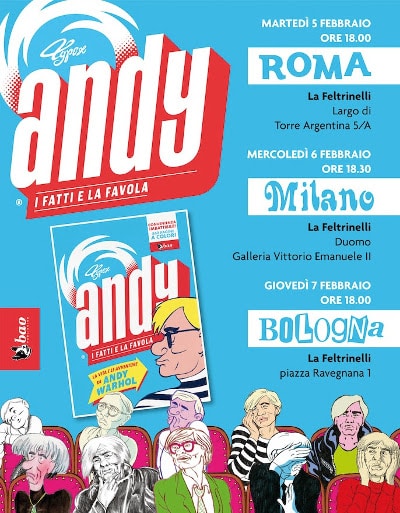 BAO Publishing annuncia il tour italiano di Typex. L’artista olandese presenterà il suo graphic novel Andy – I fatti e la favola, biografia a fumetti definitiva del genio della Pop Art, Andy Warhol.