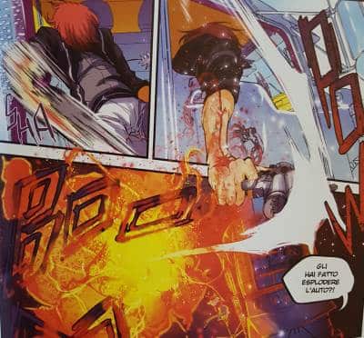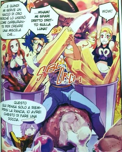 Dall’altra, arriva in certi punti quasi come una rinuncia alle potenzialità del fumetto, un continuo “dire” invece di “mostrare”, fino all’eccesso in cui alcune scene risultano comprensibili più perché “spiegate” dai personaggi che per quello che si riesce a capire dalle vignette. Pur se con tavole più grandi di quelle dei primi albi formato manga e pur se con le potenzialità date dal colore, alcune scene anche topiche si riducono in vignette piccole, poco chiare e soverchiate dalle nuvolette che ne spiegano il contenuto. Ma anche dove questo è più chiaro, il contrappunto dei commenti dei personaggi è continuo, quasi asfissiante.