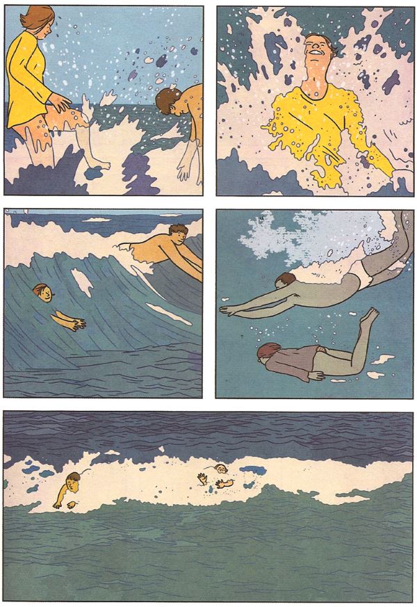 Insomma, a me pare che dietro a queste figure imprecise e solidamente disegnate, queste tavole composte da colori uniformi, spesso smorti, separati da linee nette, ci sia molto fumetto e, contemporaneamente, ce ne sia poco. Una concezione grafica che potrebbe trovarsi bene anche al di fuori delle pagine di una graphic novel, incastrata in qualunque altra arte figurativa contemporanea. Un pregio, assolutamente, di una visione matura per un arte che deve sapere guardare (anche) fuori sé stessa, per essere, al centro del mondo.